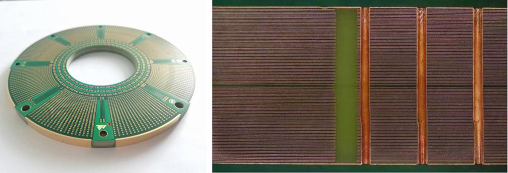 广东918.COM在最突出位置展示的是一款108层线路板,具备非常高的生产和加工难度。此产品用于半导体测试,整体板厚8.60mm,厚径比17.2:1,采用控深钻、板边金属化等特殊工艺制成。
